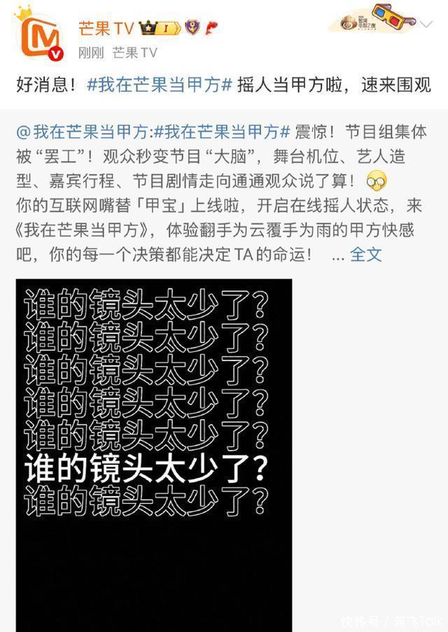 早前就传奇芒果要搞“团播”,没思到成功玩这样大——不雅众整夜晋升文娱圈操盘手,手把手决定艺东谈主气运。节目组致使祭出AI助手“甲宝”,让不雅众及时参与决议,体验“翻手为云覆手为雨”的甲方快感。 这设定一出,网友成功炸锅:“终于轮到我们决定谁该红了!”毕竟,内娱苦“成本强推”久矣,某些艺东谈主业务才调拉胯却资源不休,不雅众早憋了一肚子气。当今好了,不雅众不闲隙?成功“断粮”告戒,看你还敢不敢摆烂! 不外,也有网友一眼识破节目组的“留心计”:“这未便是把节目组和不雅众的矛盾,转嫁成不雅众之间的矛盾吗?”毕竟,决定谁红谁糊的是不雅众,到本事艺东谈主粉丝互撕、路东谈主骂战,节目组反而能坐收热度。 访佛的操作,芒果台在《景况知交记》就玩过——让艺东谈主当制片东谈主,节目烂了艺东谈主背锅。此次更狠,成功让不雅众当“雇主”,艺东谈主能不行混下去全看不雅众花样。“德云社看了直摇头:我们才无论不雅众呢,不雅众不行?换一批!”