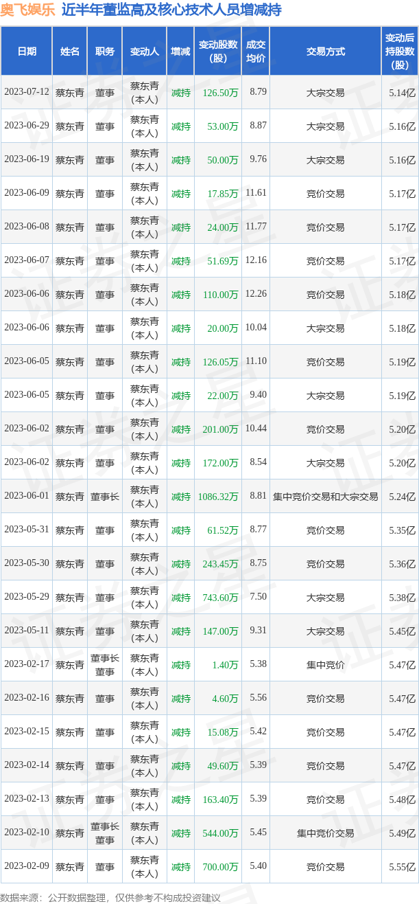 运动装备评测奥飞文娱近半年内的董监高及中枢时间东说念主员增减抓笃定如下: